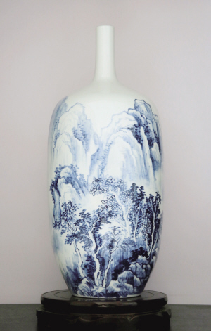 青花釉下彩瓷瓶,用傳統(tǒng)的筆法繪制燒成。畫面古韻古味,清淡雅致的畫意,表現(xiàn)作者虛懷自然,文人清高獨(dú)處的情懷。