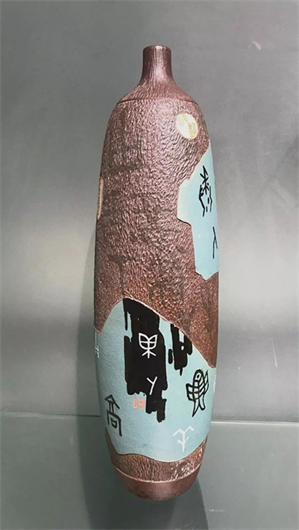 何炳欽大師在創(chuàng)作天子帝王藍(lán)(吉祥如意雙福耳尊)酒