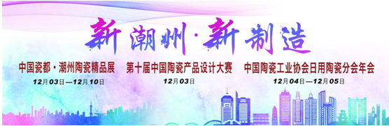 “中國瓷都·潮州陶瓷精品展”將于明天在潮州市楓溪陶瓷城隆重開幕。此次活動由中國陶瓷工業(yè)協(xié)會、中國輕工工藝品進出品商會主辦、廣東陶瓷協(xié)會支持、潮州市陶瓷行業(yè)協(xié)會和潮州市建筑衛(wèi)生陶瓷行業(yè)協(xié)會承辦,展會將從12月3日持續(xù)到12月10日,各地優(yōu)秀陶瓷廠商將亮相會場展現各自的精品。