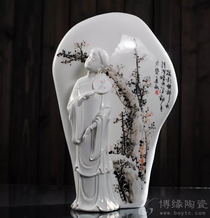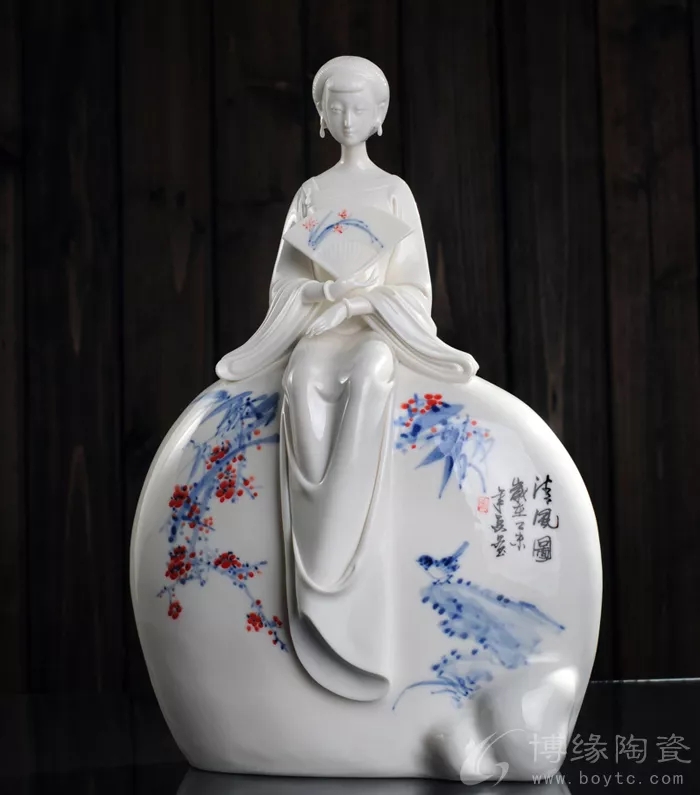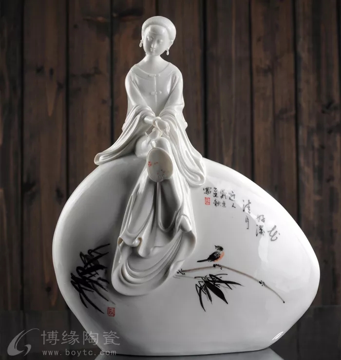 作品《絲竹婉曲》小橋,流水,猶如一曲婉轉(zhuǎn)悠揚的樂曲,作品運用優(yōu)質(zhì)白瓷為材料,以仕女有載體來表現(xiàn)它的柔和細膩之感,襯托出豐富的氛圍與景象。
