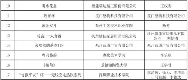 “何朝宗杯”2017中國(德化)陶瓷工業(yè)設(shè)計大賽自7月21啟動以來,歷時105天,共收到3217件作品,作品涉及中國、美國、英國、意大利、西班牙、葡萄牙、波蘭、港澳臺等17個國家和地區(qū)。 何朝宗杯大賽是為推動陶瓷產(chǎn)業(yè)轉(zhuǎn)型升級,打造陶瓷設(shè)計品牌賽事而架設(shè)的一道連接產(chǎn)、學(xué)、研的橋梁。在22日,他完美地落下帷幕了。 現(xiàn)在為大家公布獲獎名單。