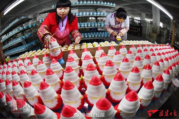 隨著圣誕的臨近,德化縣多家圣誕陶瓷飾品生產(chǎn)企業(yè)迎來(lái)生產(chǎn)和銷(xiāo)售的高峰期。今年來(lái),德化縣面對(duì)圣誕陶瓷飾品海外市場(chǎng)需求強(qiáng)勁,多家陶瓷企業(yè)從圣誕童話(huà)故事人物與動(dòng)物卡通造型設(shè)計(jì)入手,將德化制瓷工藝與圣誕文化巧妙融合,生產(chǎn)具有異域文化內(nèi)涵的圣誕陶瓷系列產(chǎn)品,深受外國(guó)消費(fèi)者的喜愛(ài)。據(jù)統(tǒng)計(jì),今年1-10月,德化外貿(mào)自營(yíng)出口總額149705萬(wàn)元,同比增長(zhǎng)16.2%。