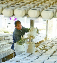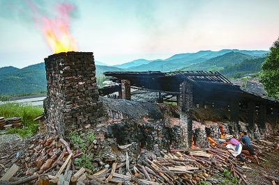有著400年歷史的月記窯還在進(jìn)行傳統(tǒng)柴燒,每月燒窯一次。 光明圖片