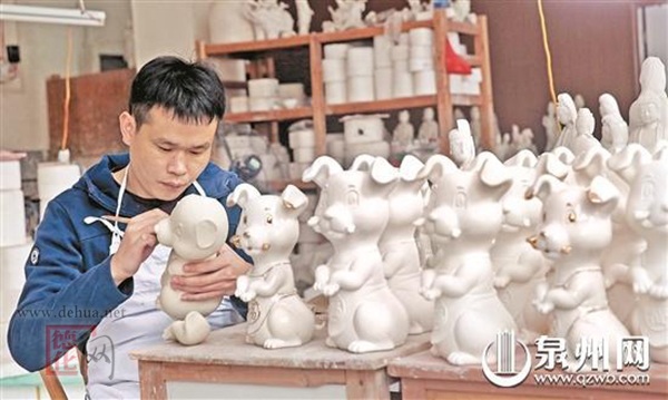 隨著農(nóng)歷狗年臨近,生肖藝術(shù)品漸入銷售旺季,企業(yè)訂單也隨之增加。為滿足市場需求,我市傳統(tǒng)工藝企業(yè)不斷創(chuàng)新,通過將生肖文化與產(chǎn)品相結(jié)合,打開更廣闊的市場空間。圖為在德化縣吉祥瓷藝工作室,工人正在趕制生肖瓷品。