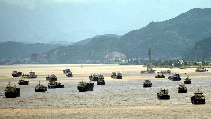 33016號中國漁政船停泊在安瀾碼頭,升火待發(fā)。這是一艘300噸級漁政船,續(xù)航能力強。我們隨船員先后上船,這也是我首次搭乘輪船進行沒有固定航道的航行,內(nèi)心頗感新奇。8時整,漁政船鳴笛三聲啟碇航行,緩緩駛向甌江口。船出甌江口,海水漸漸變清變藍。漁政船提速,船尾犁出一道呈開放形的白色水道……