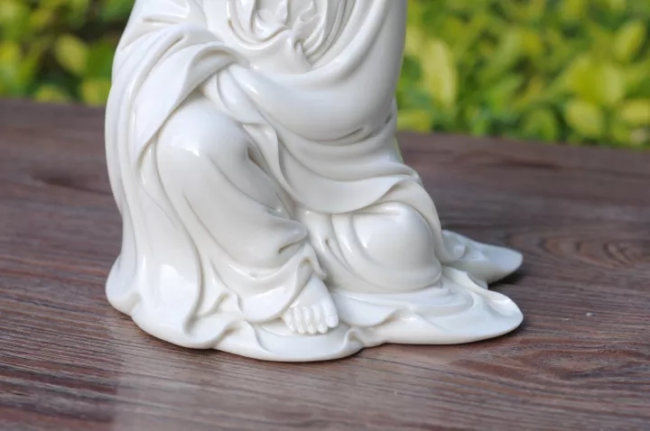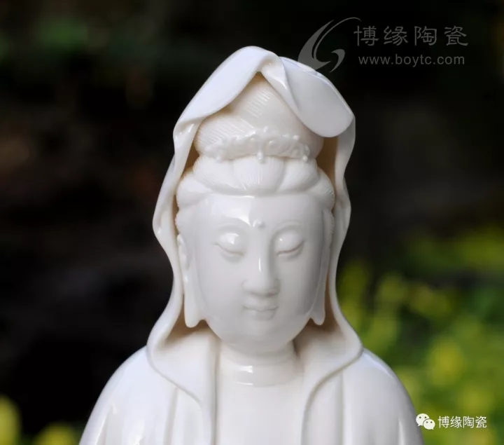 簡介:作品由中國青年陶瓷藝術(shù)家柯維太設(shè)計制作,作品精選上乘德化原礦高嶺土,經(jīng)過嚴格配方加工,觀音面部低首垂目、飽滿豐潤、神情慈祥,似在俯瞰塵世眾生。觀音的珠串、花飾手工捏塑而成,細致逼真,觀音衣紋自然,線條流暢、飄逸,堪稱為一件佳作。