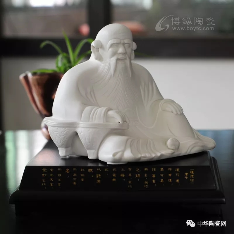 作品老子白發(fā)飄然,穩(wěn)如山岳,左手扶膝,右手憑幾,垂耳飄髯,指能彈物,目光炯炯,獨具超塵脫俗,仙風(fēng)道骨神韻。人物的面部刻畫得非常傳神,衣紋的處理也頗具動感,整個人物給人一氣呵成之感,形象精致生動。整座白瓷佛像神態(tài)浩然,和藹可親,炳煥生光,充滿魅力,是一件上乘作品。