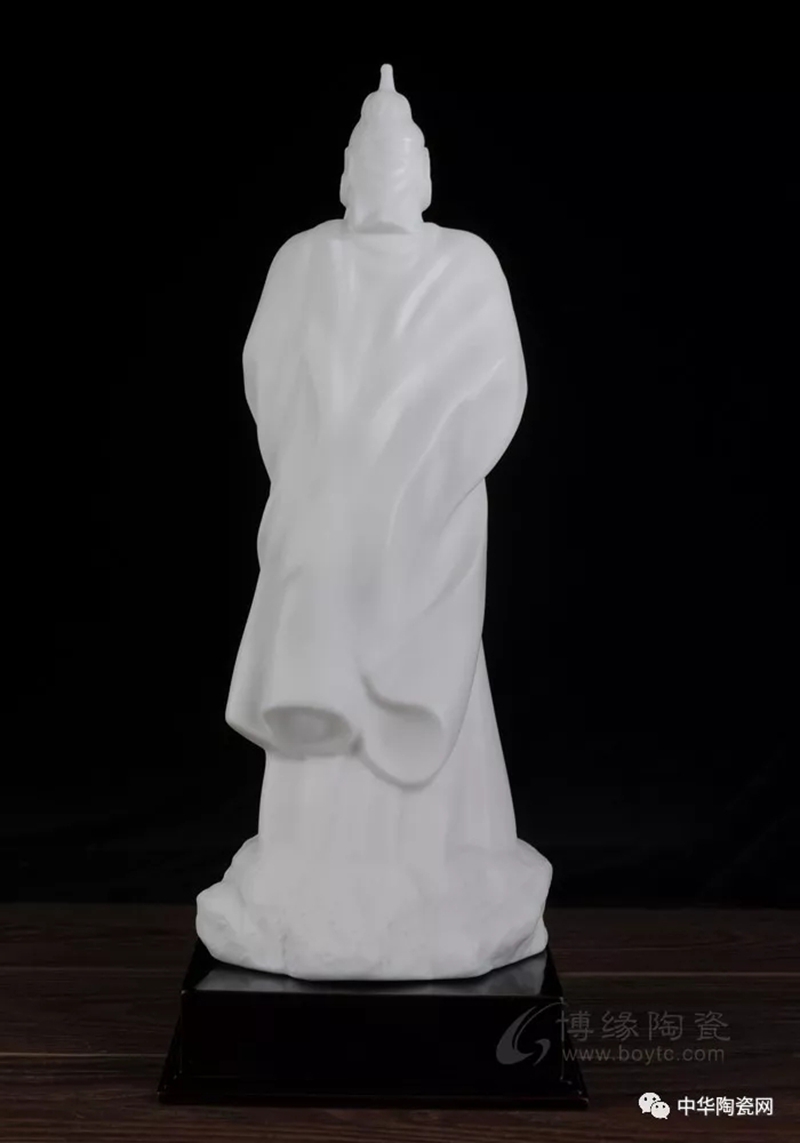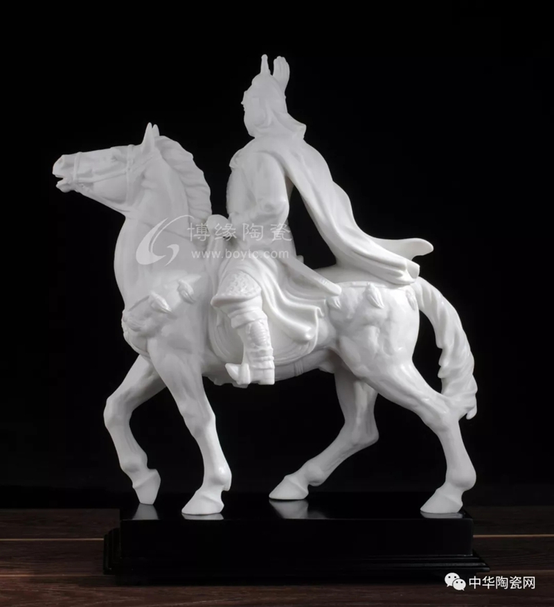 《民族英雄鄭成功》——作品以聞名世界的德化白瓷為胎質(zhì),由工藝美術(shù)大師制作,精選優(yōu)質(zhì)高嶺土,經(jīng)70多道工序手工制作而成,作品經(jīng)過1300多度高溫燒制,瓷質(zhì)溫潤、細膩、人物精雕細刻,所塑鄭成功神形兼?zhèn)洌瑲鈩莅蹴,再現(xiàn)了當年鄭成功揮師東渡,驅(qū)荷復(fù)臺的歷史場面。作品全高39cm。