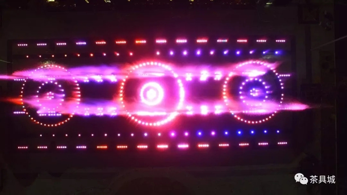 中國茶具城音樂噴泉位于主廣場南側(cè)、即將動(dòng)建的梅園(國際)大酒店前方,整體平面布局是多條直線、弧線與圓形相切,用經(jīng)典的音樂、水舞、激光、藝術(shù)燈光編排,賦予表演豐富的人文內(nèi)涵。水柱形成的銀幕,在鐳射聲光投射下,上演了迷你劇情。與周邊的戴云山筑風(fēng)格商鋪、銅制唐末全世界第一本陶瓷專著《陶業(yè)法》模本等融為一體,講述屬于世界陶瓷之都·德化陶瓷藝術(shù)的故事,帶給觀眾聽覺和視覺的雙重沖擊。