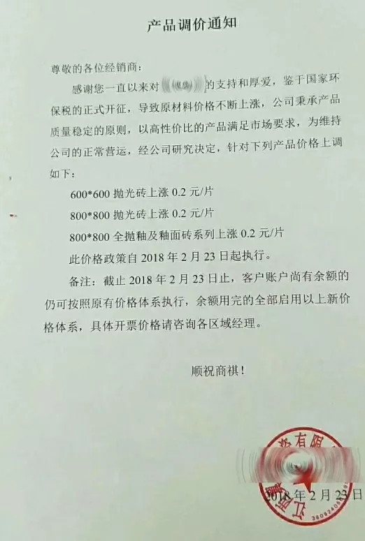 1 瓷磚漲價(jià)如期而至
