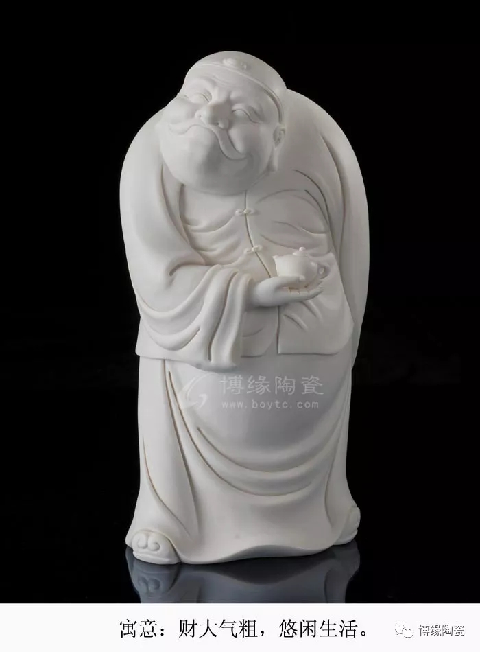 作品題材獨特新穎,創(chuàng)作手法隨性,以富態(tài)悠閑、悠然自得的地主形象為題材,寓意著財運亨通,納四方財、招財進(jìn)寶,作品不僅寓意美好。而且作品是精細(xì)德化上好的白瓷為瓷質(zhì)、含雜質(zhì)少,瓷質(zhì)潔白 ,瓷感細(xì)膩。作品技藝精湛,關(guān)注每一處細(xì)節(jié),精雕細(xì)刻,技法細(xì)膩溫潤,線條清晰、簡潔、瀟灑。作品還需經(jīng)一千三百多度高溫?zé)贫。是家居、店鋪、會所、公司等的最佳招財擺件之選。