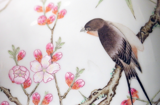 雍正粉彩花鳥抱月瓶,大維德基金會藏