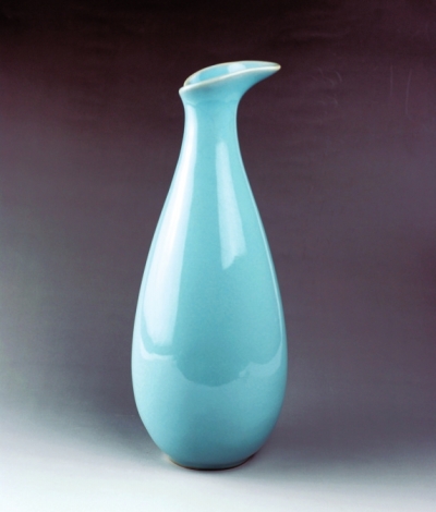 1975年,29歲的朱文立從部隊復(fù)員后,被安排到汝州市汝瓷二廠當(dāng)臨時工。朱文立高中畢業(yè),當(dāng)時算有一定學(xué)歷,且對化學(xué)很有興趣,因此被廠里安排到試驗組進(jìn)行臨汝瓷豆綠釉的研究與開發(fā)。人如其名,朱文立似乎注定“以文立身”。他沒有滿足于豆綠釉研制工藝本身,而是像一位專家,精心研究、記錄,將臨汝瓷豆綠釉的研制過程寫成了論文《汝瓷豆綠釉》發(fā)表在1980年的《瓷器》雜志上,得到當(dāng)時國家輕工部科學(xué)研究院教授李國楨的重視,李國楨通過寫信指導(dǎo)朱文立的研究,這時朱文立才知道自己研究的豆綠釉是臨汝瓷,而不是汝瓷。由于朱文立在開發(fā)豆綠釉中的貢獻(xiàn),汝瓷二廠任命他為廠里“臨汝窯天藍(lán)釉”試制組組長。