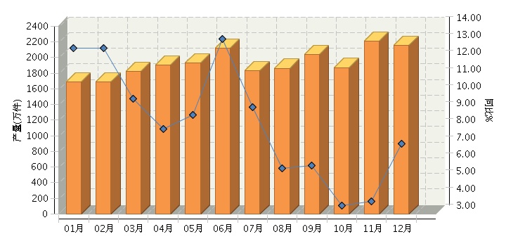 據(jù)國(guó)家統(tǒng)計(jì)局?jǐn)?shù)據(jù)顯示,2017年全國(guó)衛(wèi)生陶瓷規(guī)模以上企業(yè)累計(jì)完成產(chǎn)量21,789.56萬件,同比增長(zhǎng)4.73%。其中:12月份完成產(chǎn)量2154.47萬件,同比增長(zhǎng)7.09%。
