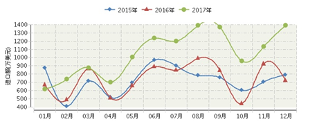 2017年我國(guó)陶瓷磚進(jìn)口量?jī)r(jià)同比雙增長(zhǎng)。據(jù)海關(guān)數(shù)據(jù)顯示,2017年1~12月我國(guó)陶瓷磚累計(jì)進(jìn)口金額1.26億美元,同比增長(zhǎng)42.21%;進(jìn)口量606.11萬平方米,同比增長(zhǎng)23.76%。從連續(xù)三年月度進(jìn)口額對(duì)比情況看,2017年除1月份,其他各月進(jìn)口額均高于上兩年水平,其中5~12月(除9月份之外)進(jìn)口額均在1000萬美元以上,12月進(jìn)口額1393.14萬美元,為全年單月最高