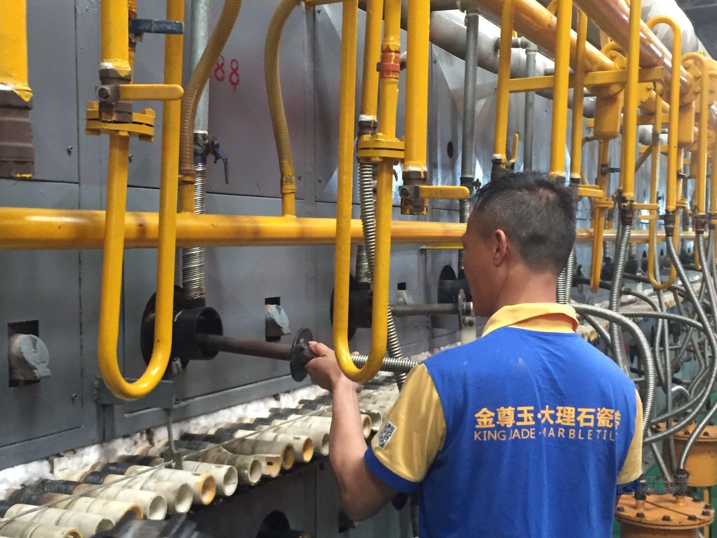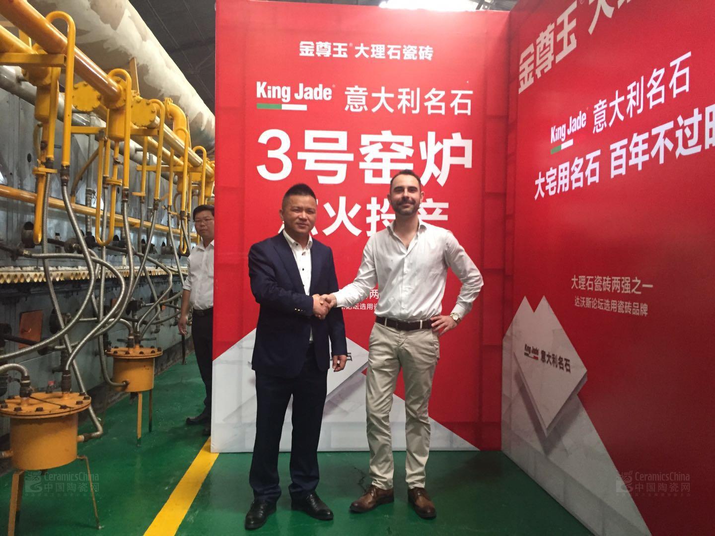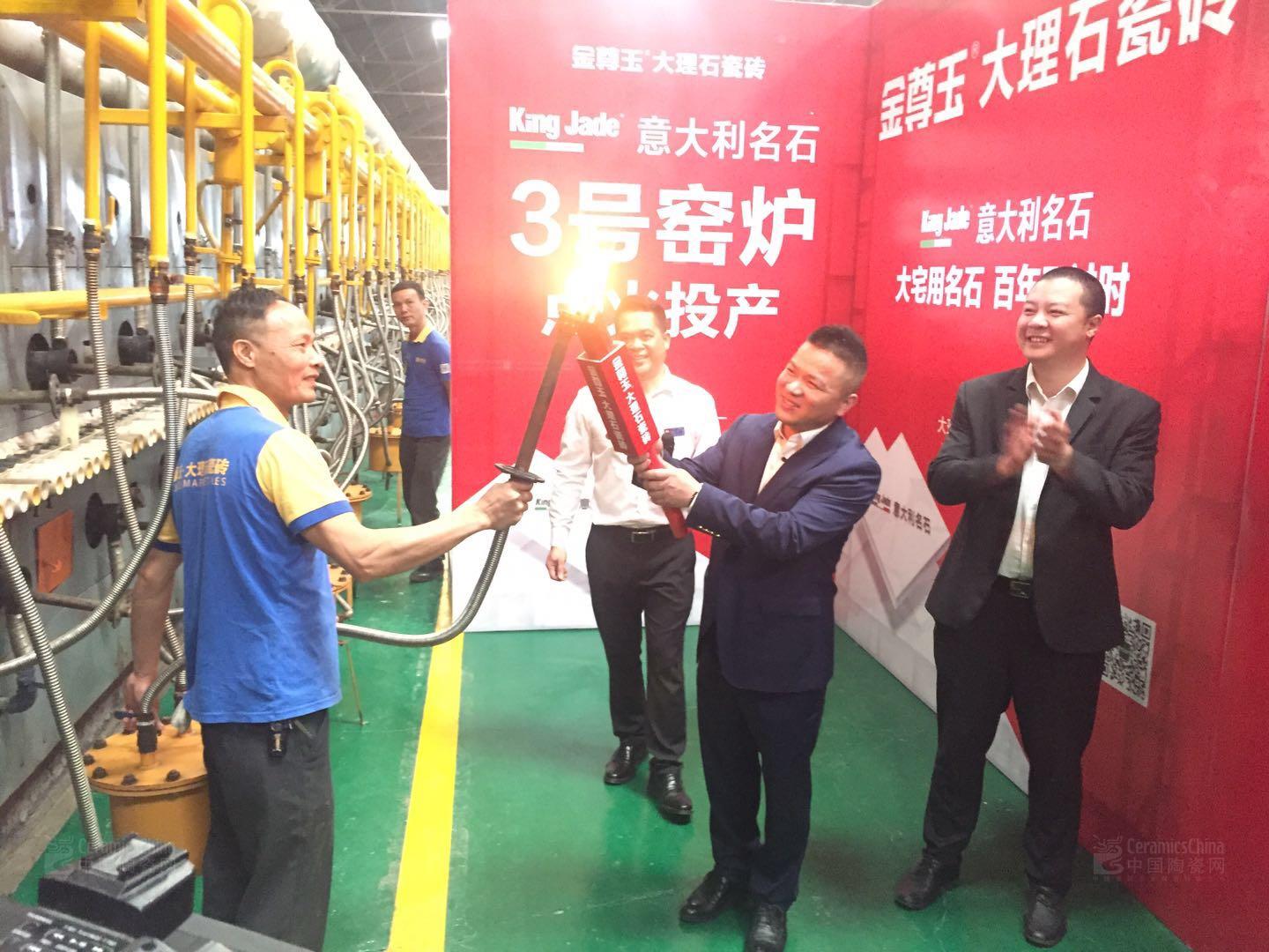 2018年3月28日,在金尊玉西樵生產(chǎn)基地,金尊玉大理石瓷磚董事長南順芝攜意大利天工法拉利集團(tuán)代表人員在行業(yè)主流媒體的見證下舉行3號(hào)窯爐點(diǎn)火投產(chǎn)的點(diǎn)火儀式。這意味著金尊玉新一代大理石瓷磚生產(chǎn)線火紅開窯。同時(shí)也意味著,作為中國第一家引進(jìn)綠色工廠智能化儲(chǔ)坯系統(tǒng)的金尊玉,正式開啟自動(dòng)化生產(chǎn)。