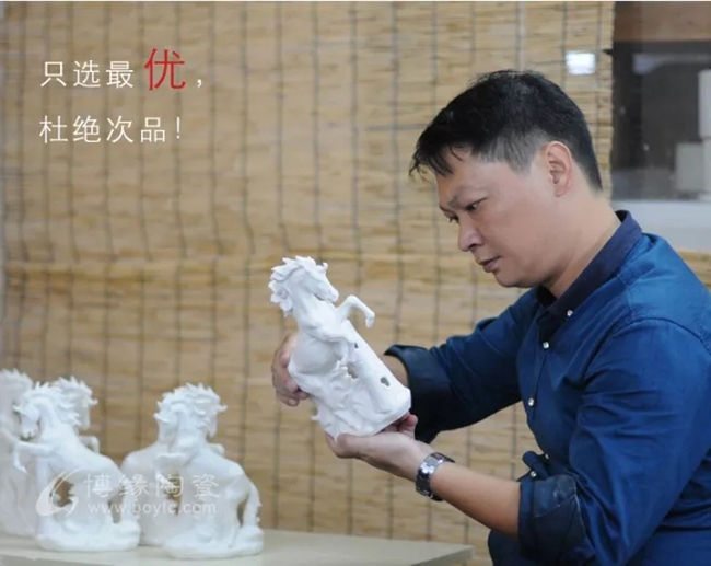 省大師18年專注瓷馬,手工白瓷瓷雕匠心打造,其造型非凡獨(dú)特,需經(jīng)1330多度高溫?zé)疲蹩量痰闹圃旃に嚺c較低的成品率,彰顯中國(guó)白瓷瓷馬的珍貴性。