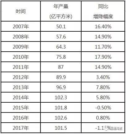 2007-2017年全國(guó)陶瓷磚產(chǎn)量統(tǒng)計(jì)