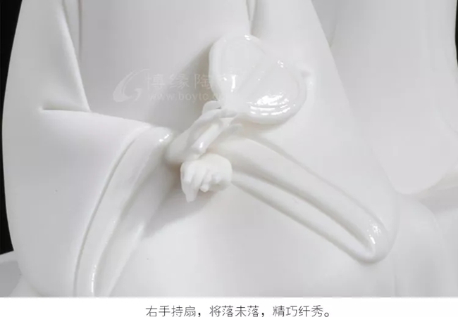 作品以德化優(yōu)質(zhì)的白瓷為材料,運用極其概括的藝術(shù)手法,顯現(xiàn)出一副恬靜的畫面,作品以妙齡少女,小橋,荷花為作品主題,把作品雕刻的栩栩如生,讓人觸景生情勾勒起江南之美,如畫的風景,讓人不由駐足欣賞這美景,晨光照應著小橋邊的荷花,流水,春風吹拂著江南的水,水波微微蕩漾著,怎能叫人錯過如此美景。。。