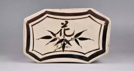 白地黑花褐彩竹枝山雀紋如意形枕 金代