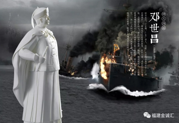 原名永昌,字正卿,廣東廣府人,原籍廣東番禺縣龍導(dǎo)尾鄉(xiāng)(廣州市海珠區(qū)),清末海軍杰出愛國將領(lǐng)、民族英雄。鄧世昌以治軍嚴(yán)格、忠勇剛正聞名。黃海海戰(zhàn)中,指揮“致遠(yuǎn)”艦勇敢戰(zhàn)斗,在戰(zhàn)艦受重創(chuàng)側(cè)傾的情況下,全速撞向日聯(lián)合艦隊(duì)第一游擊隊(duì)旗艦“吉野”,決心與其同歸于盡。其英勇無畏,舍身救國,視死如歸,慷慨就義的精神,彰顯了中國海軍高尚風(fēng)骨。