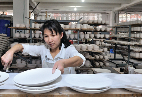 “目前,企業(yè)發(fā)展面臨的最大瓶頸是有訂單,卻招不到工人。”陳志強談起招工問題,顯得有些無奈。陶瓷企業(yè)是勞動密集型企業(yè),在生產(chǎn)自動化程度不高的情況下,對一線工人的需求量很大。近年來,到德化的務(wù)工人員明顯減少,本土年輕一輩又多到大城市工作,陶瓷企業(yè)招工問題一年比一年突出。為了留住工人,今年春節(jié)一過,陳志強便和車間主任提著禮物和現(xiàn)金紅包到工人家里拜訪慰問,大打人情牌。
