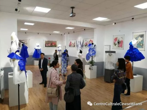服裝設(shè)計(jì)展以“中國傳統(tǒng)青花瓷元素”為主題,由米蘭中國文化中心與那巴美院共同主辦,為米蘭設(shè)計(jì)周增添一抹靚麗的青花色彩,也為海外僑胞及意大利本土居民呈現(xiàn)一場“傳統(tǒng)文化與現(xiàn)代設(shè)計(jì)碰撞”的視覺盛宴,更是一場與青花瓷的浪漫邂逅。那巴美院系主任、副主任、教授等紛紛到場祝賀。