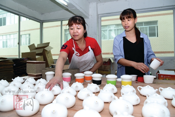 “我認為茶具不但要實用,而且要在外形和質(zhì)量上下功夫,才能迎合市場的需求。”5月7日,在詩墩工業(yè)區(qū),“雅自玉瓷”負責人楊德彪說,他從一名普通的陶瓷員工,經(jīng)過十多年的實踐,2015年6月創(chuàng)辦了自己的茶具工作坊,主要生產(chǎn)中高檔日用白瓷系列茶具,在市場上廣受歡迎。