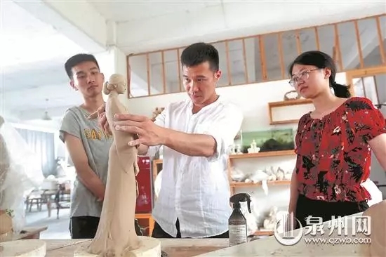 我市工藝美術(shù)歷史悠久,享譽海內(nèi)外,吸引了不少外地工藝美術(shù)人才前來交流創(chuàng)作。德化縣積極引進高端人才和設計團隊,加強交流,壯大本土設計隊伍,推動產(chǎn)品設計與國際藝術(shù)主軸、時尚潮流、客戶需求全面接軌,促進前沿的設計理念、產(chǎn)品在當?shù)貞蒙a(chǎn)。圖為近日,清華大學美術(shù)學院陶瓷藝術(shù)設計系研究生丁嘉偉(右),與福建省陶瓷藝術(shù)大師李錦峰(中)進行交流。