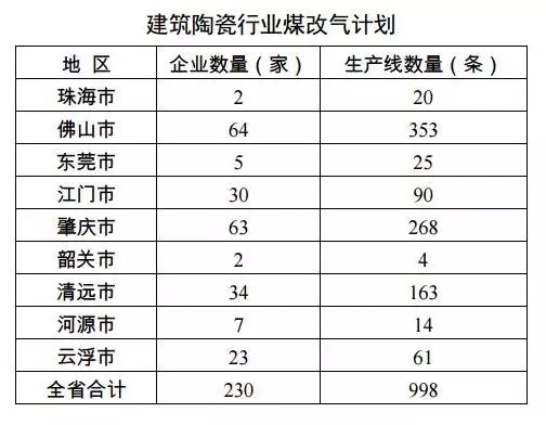 根據(jù)《方案》要求,廣東省共有230家企業(yè)、998條生產(chǎn)線被列入“煤改氣”計(jì)劃列表。