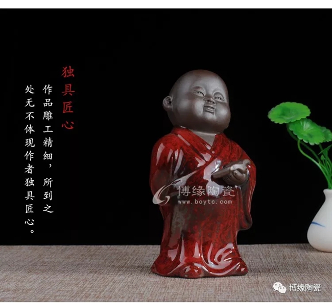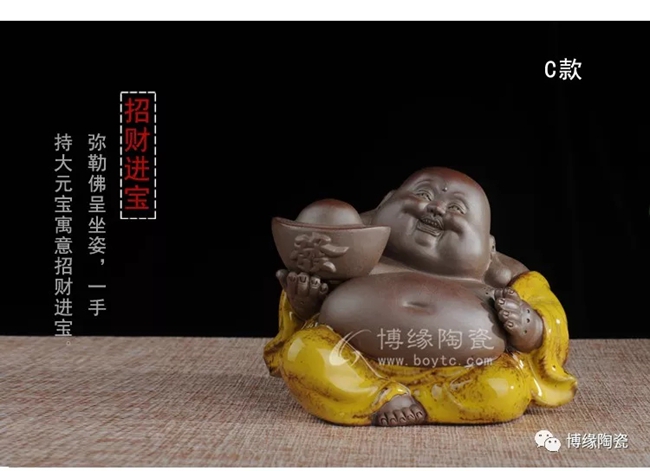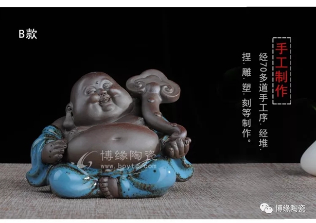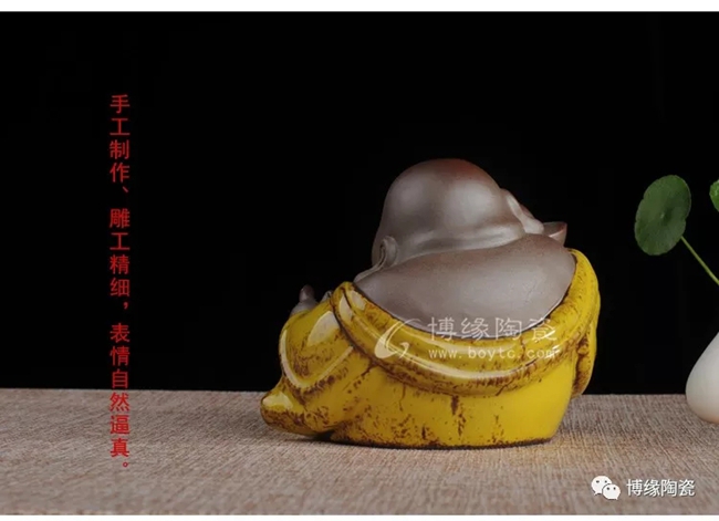 作品雕刻細致,神態(tài)憨厚、喜慶,笑容可掬,活靈活現(xiàn),表情逼真,惹人喜愛,可做茶寵,家飾擺件,酒柜客廳擺件,車載擺件,辦公室、茶所、會所、店等擺設裝飾佳品,寓意美好,百看不厭,功能多多。