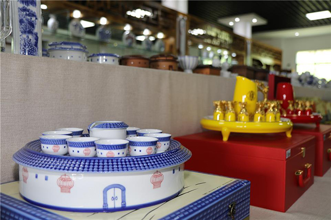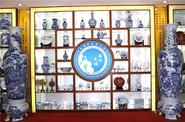 “中國青花瓷之鄉(xiāng)”——大埔縣陶瓷產(chǎn)業(yè)管理辦公室展示的產(chǎn)自該縣的青花瓷系列產(chǎn)品