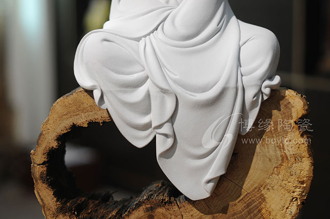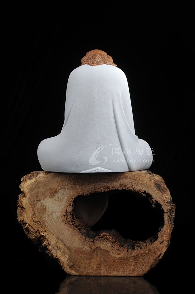 所塑作品神情嫻雅平靜,人物性格鮮明,造型優(yōu)美,神態(tài)逼真,風(fēng)格洗練,經(jīng)高溫1000多度燒制,整尊造像活靈活現(xiàn),同時作品還結(jié)合了木根雕工藝,更具美感,是一件上乘之品,適合作為會所、家居等擺件。