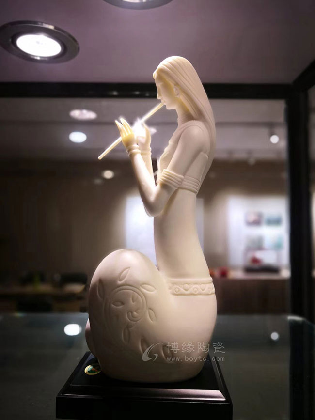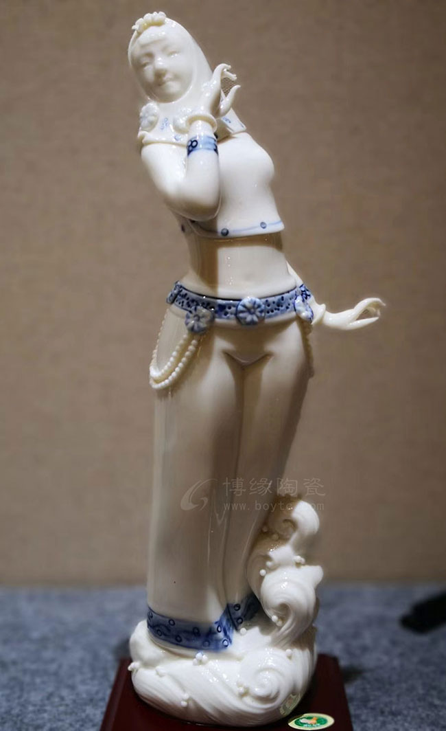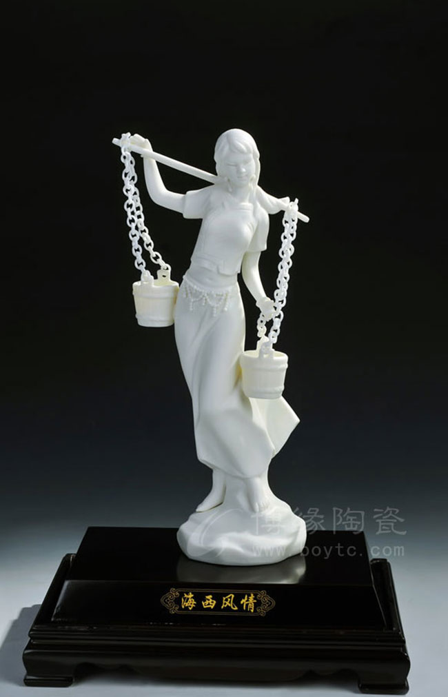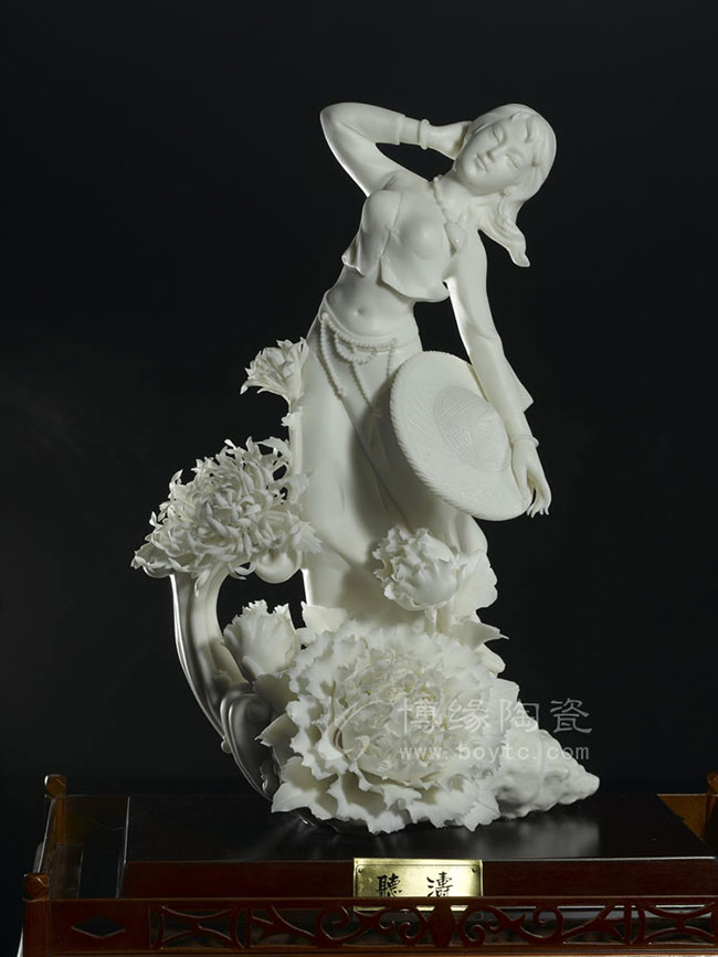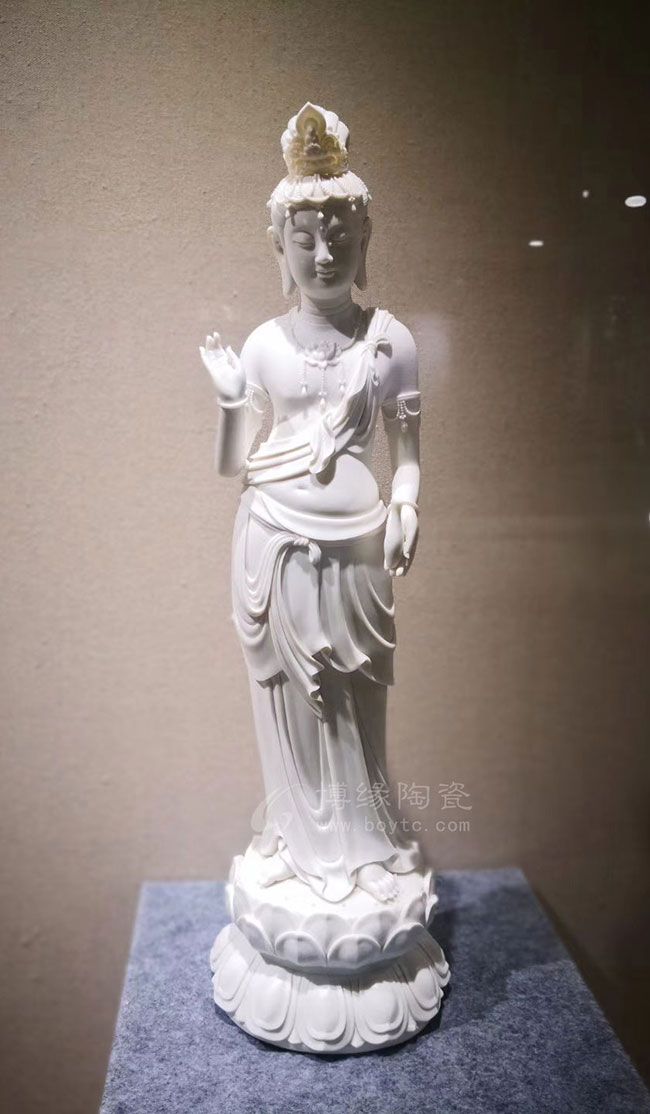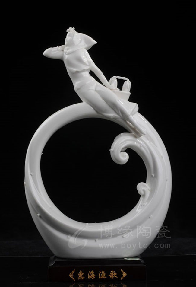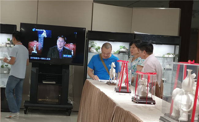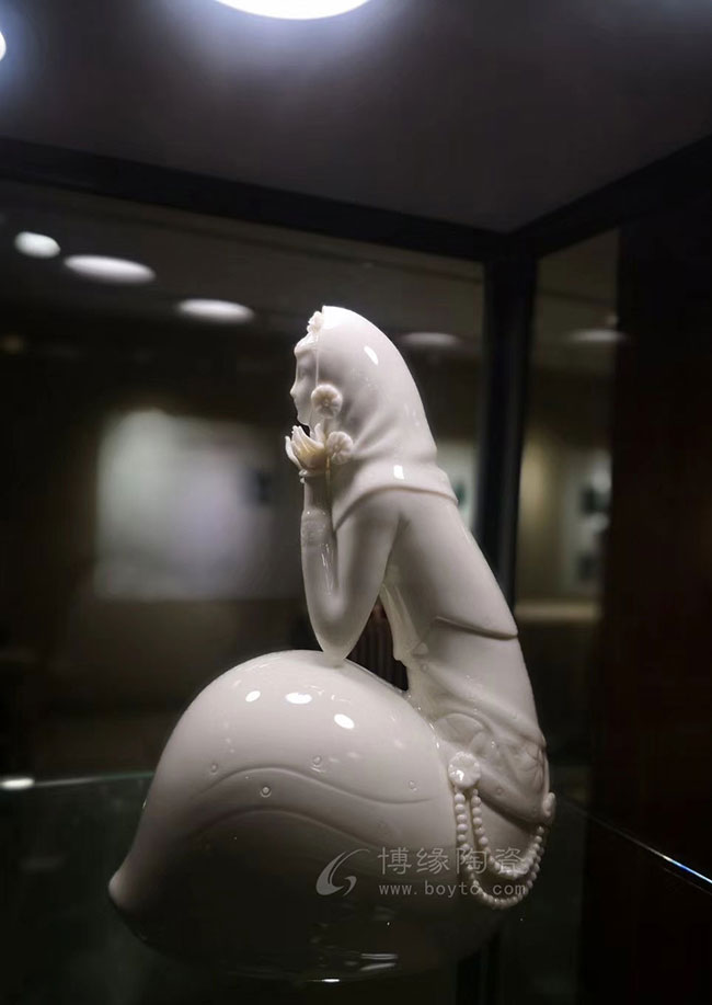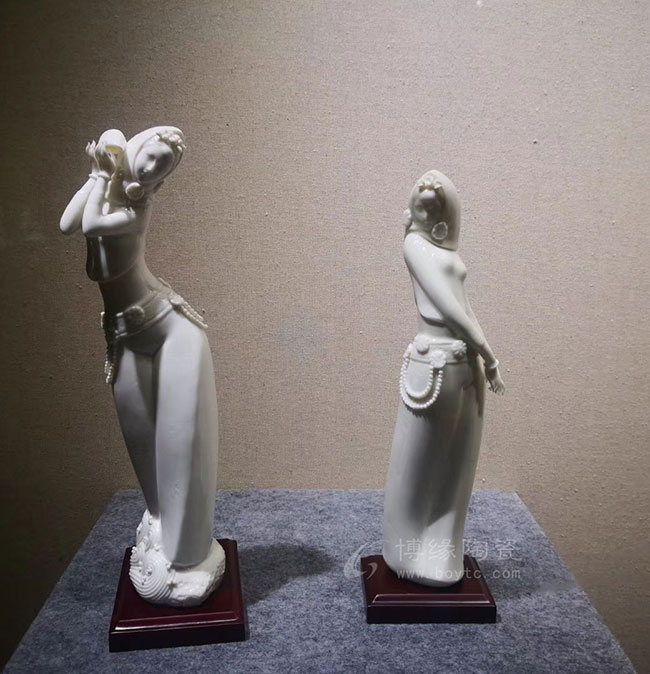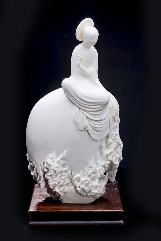 策展人譚偉彬介紹:“德化瓷的作品在繼承傳統(tǒng)寫實(shí)的基礎(chǔ)上,吸收了西方的技藝手法,以大雕塑的流暢的線條感、體積感、以夸張的形式增強(qiáng)它的藝術(shù)感染力。我們傳統(tǒng)工藝如果像德化瓷這樣既繼承傳統(tǒng),又可以有時(shí)代氣息的藝術(shù)作品,傳統(tǒng)工藝美術(shù)的路子會(huì)越走越寬。”