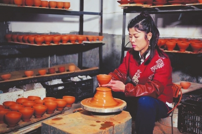 傳統(tǒng)建窯建盞燒制技藝非常古老,要經(jīng)過選瓷礦、瓷礦粉碎、淘洗、配料、陳腐、練泥、揉泥、拉坯、修坯、素燒、上釉、裝窯、焙燒等13道工序。每道工序王清霞都得摸透學(xué)會。“因為每個窯都不同,每次的氣氛也不一樣。師傅教得再多,也得靠自己實踐摸索。”王清霞說道。
