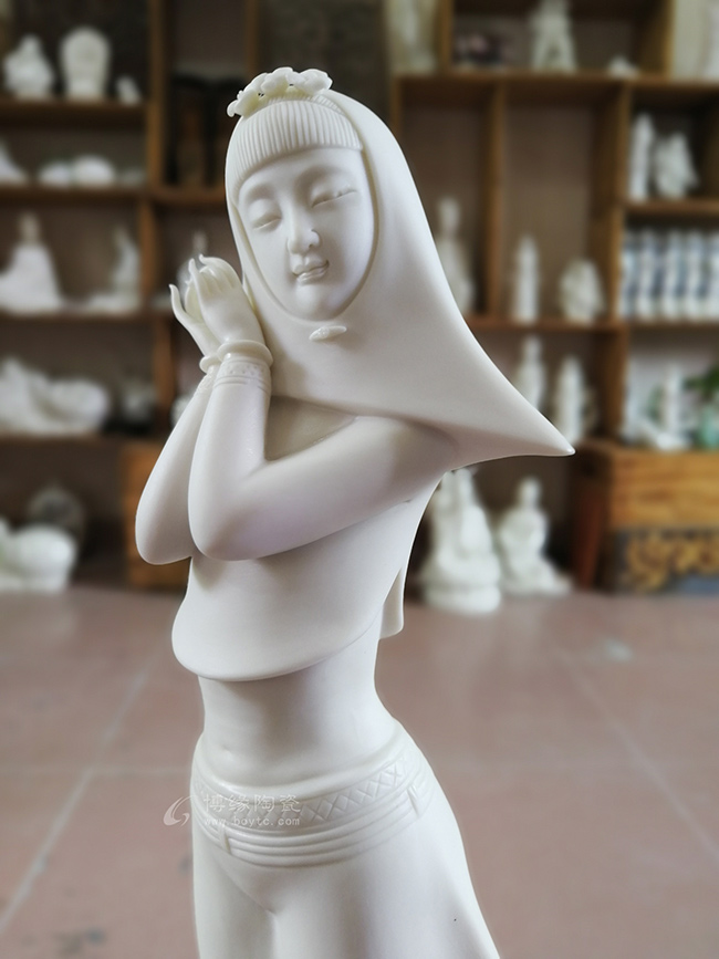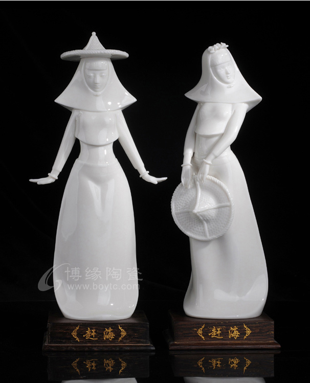 德化陶瓷作品創(chuàng)作題材豐富,其中惠安女也是一大題材之一,因德化白瓷細(xì)膩,可塑性強(qiáng),適合人物作品創(chuàng)作,所創(chuàng)作品形象傳神,栩栩如生。