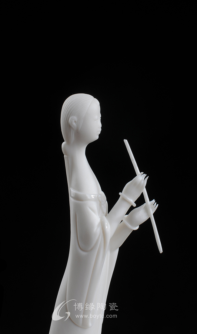 作品瓷質(zhì)細(xì)膩,工藝精湛。女子神采婀娜,嬌羞動(dòng)人,如清風(fēng)明月般自然舒心。