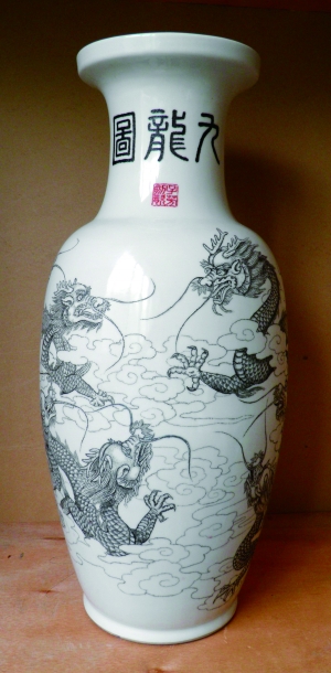 1964年,朱友麟去世,茅子芳這個“編外徒弟”無法再行請教,只好走上了“修行靠個人”的路,在繼承傳統(tǒng)刻瓷技藝的基礎上,吸收了素描、刺繡、金石、攝影等藝術風格,創(chuàng)出了具有自己獨特風格的刻瓷作品。“刻瓷就是在燒制好的瓷器上寫字作畫的一門技藝,是以刀代筆在瓷板、瓷瓶、瓷盤上,表現(xiàn)素描、線描、中國畫及書法的藝術,它將繪畫與鏨刻結(jié)合,被譽為在瓷面上‘繡花’。”茅子芳說,傳統(tǒng)的刻瓷都是在白瓷上刻制,刻完以后再涂上顏色,但他另辟蹊徑,自上個世紀七十年代起首創(chuàng)深色釉瓷來刻制,“不用上色,光是根據(jù)不同的工具、刀法、疏密,就可以創(chuàng)造出至少五種色調(diào)的變化。”