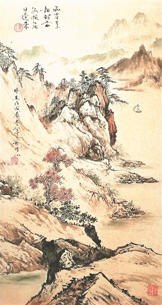 瓷板畫 《仿王希孟<千里江山圖>》局部