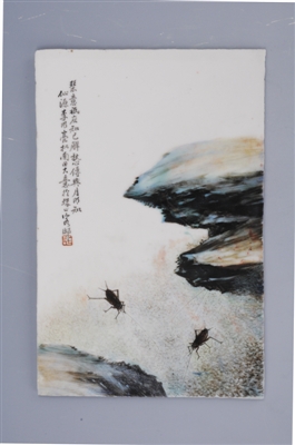 萍鄉(xiāng)博物館收藏李明亮1組4件粉彩蟲草圖瓷板畫,系該館舊藏,已被評為國家珍貴文物,主要特征如下: