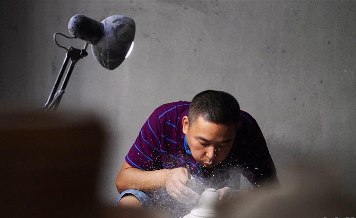 團隊負責人、今年39歲的汪敏輝告訴記者,團隊自2010年成立以來,每一件作品都是純手工完成,努力做到精益求精。比如一只普通的薄胎茶杯,從成型到燒制成功,需經(jīng)十幾位工匠之手,耗時至少2個月以上,且成品率不到百分之十,任何一個環(huán)節(jié)出錯,作品都將成為廢品。他說,“工匠精神”是手工制瓷人永恒的追求與堅守。