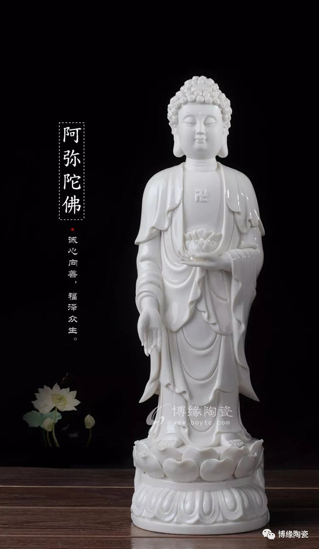 阿彌陀佛是西方極樂世界的教主。佛經(jīng)上講,這里無任何悲痛和苦惱,居民們可以盡情享受諸種快樂,所以叫“極樂”,阿彌陀佛又被稱作接引佛。