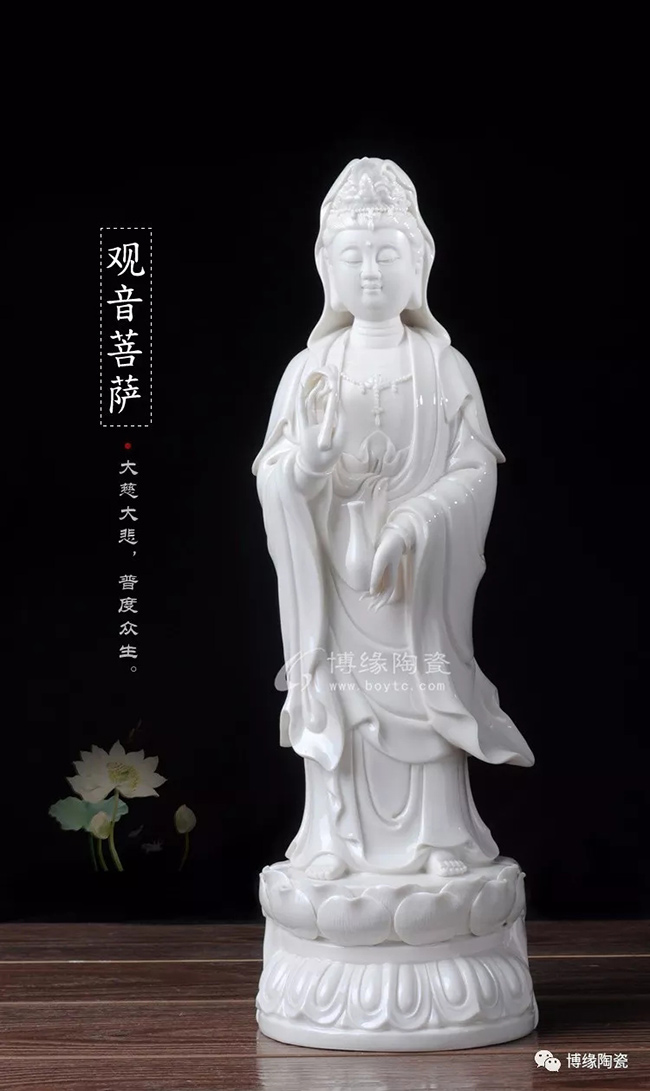 觀音,亦稱觀世音,是西方三圣之一,阿彌陀佛的左脅侍,是佛教救苦救難的化生。觀世音菩薩具有平等無私的廣大悲愿,當(dāng)眾生遇到任何的困難和苦痛, 如能至誠稱念觀世音菩薩,就會(huì)得到菩薩的救護(hù);觀世音菩薩最能適應(yīng)眾生的要求,對不同的眾生,便現(xiàn)化不同的身相,說不同的法門。