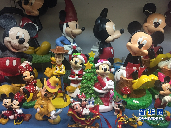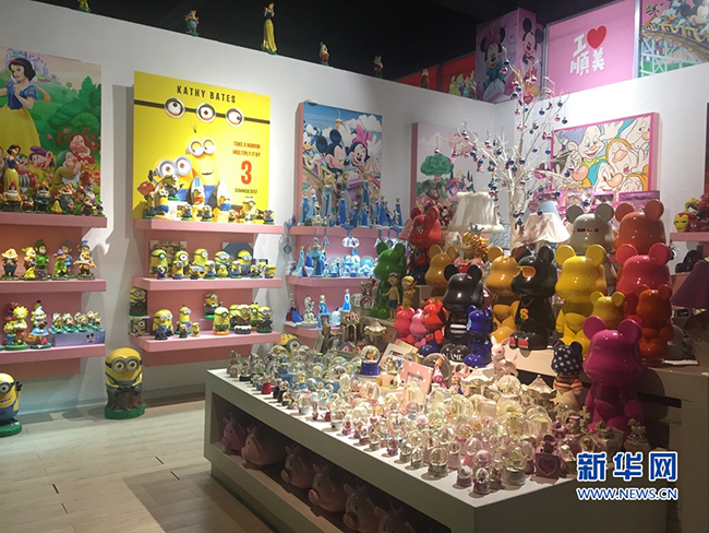 在順美陶瓷文化生活館的國際產(chǎn)品展區(qū),擺滿了與各知名外企聯(lián)合開發(fā)的陶瓷卡通形象產(chǎn)品。