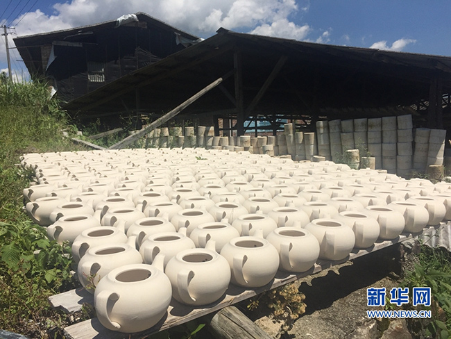 如今,德化擁有陶瓷企業(yè)2600多家,從業(yè)人員10多萬人。圖為在月記窯一個(gè)工作室外晾曬的陶瓷。