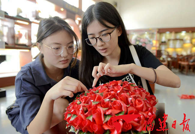 師徒幾人用一雙巧手捏塑出一朵朵精致的玫瑰花,用獨(dú)特的陶瓷技藝紀(jì)念牛郎織女的民間傳說(shuō),以此倡導(dǎo)男女情感忠貞、家庭和美的社會(huì)風(fēng)氣。