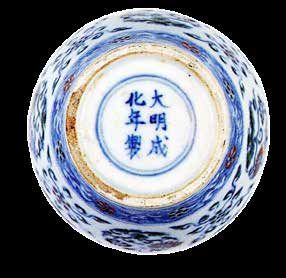 圖 1【明】成化斗彩雞缸杯及底書青花雙框“大明成化年制”六字雙行楷書款