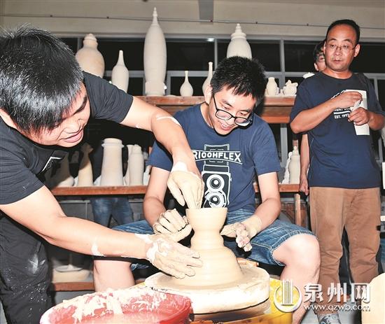 游客在手拉坯創(chuàng)作中體驗(yàn)德化“走出去”的陶瓷文化 。