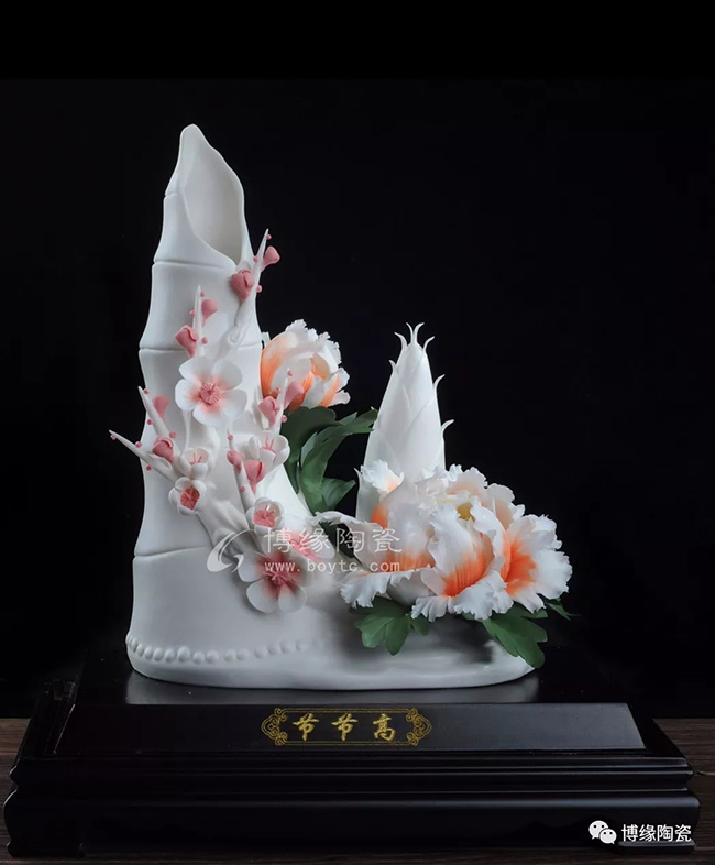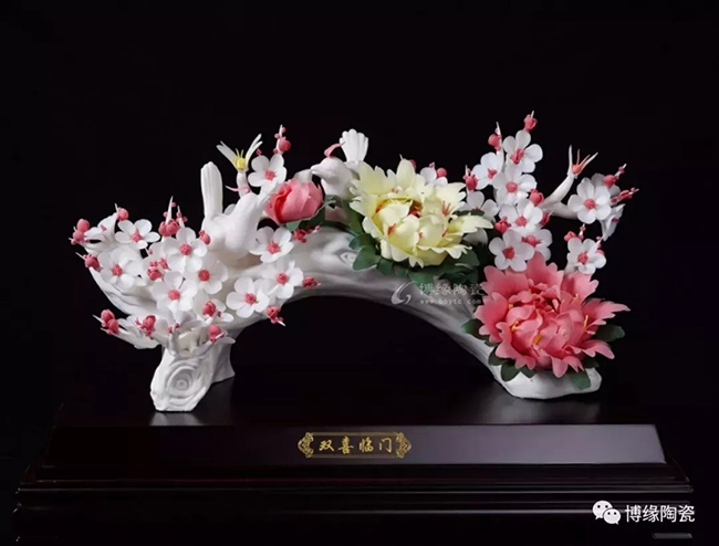 瓷花藝術(shù)主要是以陶瓷的釉融入雕刻藝術(shù)作為一種表現(xiàn)的手法,通過這種中國化 的畫風(fēng)和繪畫技巧表現(xiàn)一種神韻,陶瓷藝術(shù)與雕刻藝術(shù)結(jié)合以后,形成了源遠(yuǎn)流長的瓷花藝術(shù)。