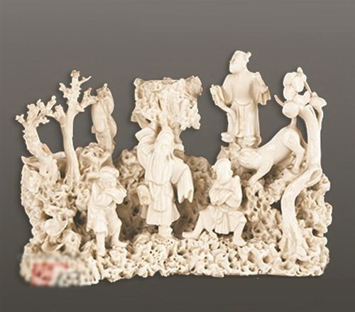 德化窯文房雅玩主要有洗、燭臺(tái)、印盒、筆筒、筆架、硯臺(tái)、印章、鳥食罐、擺件等。這些文房用具既有實(shí)用功能,又有藝術(shù)欣賞價(jià)值,深受人們的喜愛。